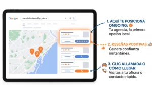 Tu negocio no está en todas partes: está en una calle, en un barrio, en una ciudad específica. Por eso, el seo local para inmobiliarias es la base de tu negocio. Si un usuario busca «inmobiliaria cerca de mí» o «agencia inmobiliaria en [tu barrio]», tienes que aparecer tú.
